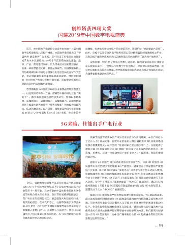 亮相 2019 年中国电影电视技术学会城市电视台技术分 络将舞台剧《天路》的 4K 直播信号发送至首都电影院的 4K 电影银幕上,