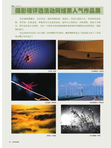 《天网》林海 《沙漠孤旅》张继明 《红蜻蜓》程薏熹 《坦途通蓝天》黄柏洪 《奔涌》王泗荣 《芦花飘荡》李鸣 120 丨新时代摄影