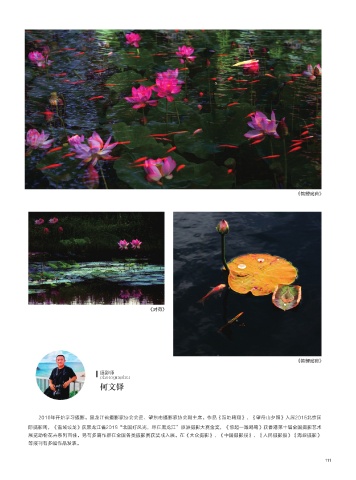 主题展 / THEME 《锦鲤戏荷》 《倒影》 《对荷》 《荷花宝座》 《锦鲤戏荷》 《锦鲤戏荷》 摄影师 photographer 何文铎 《锦鲤戏荷》 《荷花与莲蓬》 110 丨新时代摄影 111