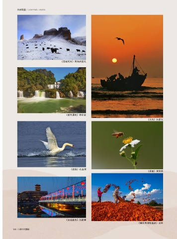 光影联盟 / LIGHTING UNION 《高原》何海印 《雪域牦牛》青海高原风 《浓浓年味》丰顺 《日出》山东海阔 《爱布瀑布》李仲武 《出海》孙彦光 《闹春田》龙岩 《思乡》王群 《踏浪》石玉明 《采蜜》黄俊勇 《欣赏》李年令 《宋城夜色》刘彦博 《菊花香漫致富路》卓林 《一道风景线》王群 《光影梦幻》甘晓明 134 丨新时代摄影 135