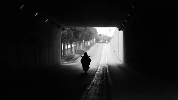 (白天隧道)这是白天的隧道,正好路过一个人,感觉这个人要奔向光明,有一种意境和神秘感。