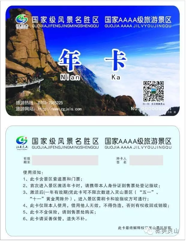 灵山年卡办理使用细则