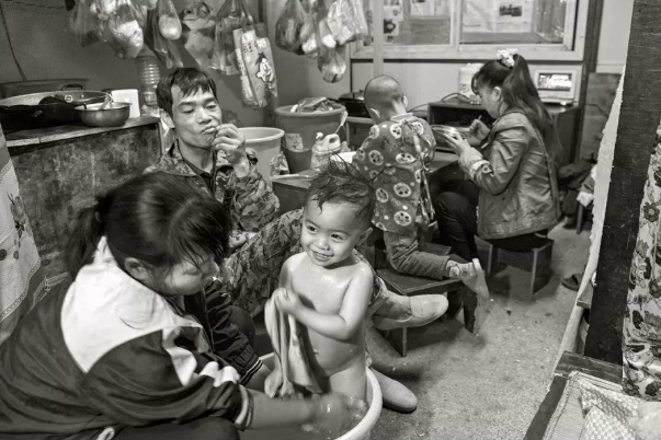 曾有摄影师拍摄了农村空巢老人和留守儿童的摄影作品,向社会揭开了农民工心中的隐痛。而我所关注的这群人,较之于出外打工的个体农民工,把根拔出得更彻底,他们的家人或和他们一起劳作于同一个工地,或就近从事着其他的工作,或纯粹是仅仅为了和家人在一起,以慰藉亲情,以保护婚姻。他们没有固定的住所,没有稳定的收入,如同在干涸的泥坑中的两条鱼,相濡以沫。他们的孩子在城里人的异样目光下,委身于不被体制保护的“打工子弟学校”……