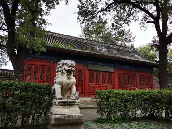 ③第二进殿。为天王殿,面阔3间,七檩悬山顶。殿前置龟趺石碑2通。殿东、西两侧建有配殿,面阔各5间,七檩硬山顶。